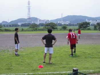 ikeda君、ヤノ君のリフティング!後姿は怪我のため見学に来た木藤さん