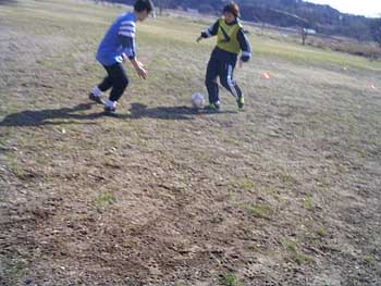 | 今日は前日、「あめ?」という噂も会ったのですが、ふたを開けてみれば、文句無しのサッカー日和!暑くもなく、寒くもないといった天候の中、7人が集まり、ミニサッカーを楽しみました。 |