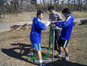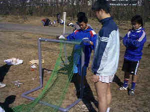 ついに関戸橋サッカーに専用ゴールが作られる事となりました。塩化ビニル製のパイプにネットを張りつけるだけという実にシンプルな物です(東急ハンズにて二つで材料費計1万円!)簡単に作れるので是非試してみて下さい。
